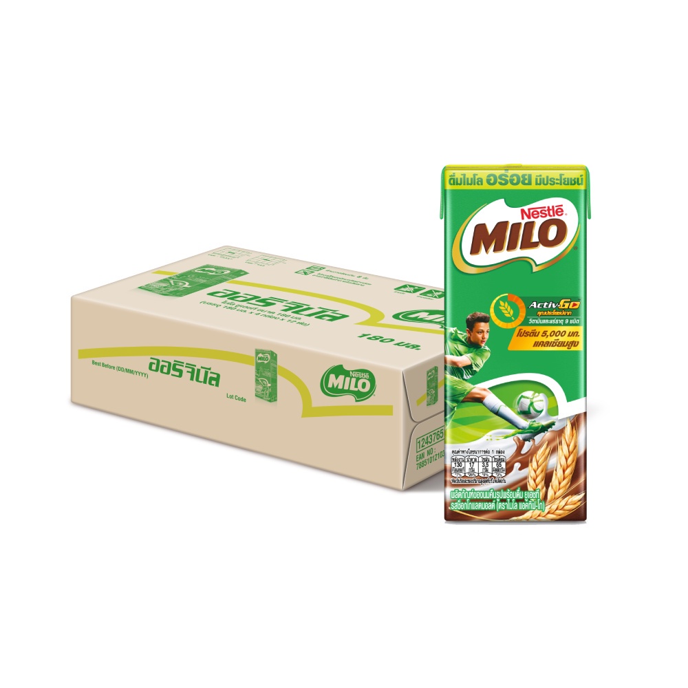 Milo เครื่องดื่มช็อกโกแลตมอลต์ แบบ UHT รสชาติอร่อย ดื่มง่าย ให้คุณได้อิ่มอร่อยทุกที่ ทุกเวลา อัดแน่นไปด้วยคุณประโยชน์ที่ลงตัวของโปรโตมอลต์ (มอลต์สกัด)จากข้าวบาร์เล่ย์ ซึ่งเป็นลิขสิทธิ์เฉพาะของเนสเล่ท์ สวิสเซอร์แลนด์